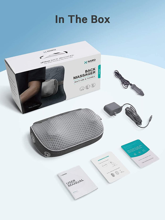 Naipo Shiatsu Massage Pillow with Heat, Electric Deep Kneading Back Neck Massager for Lower and Upper Back Shoulders Legs Foot Arms